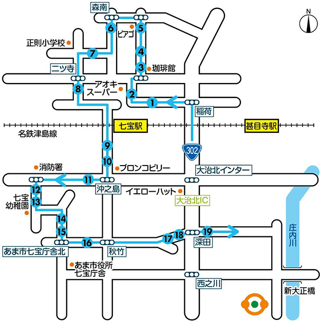 | 14 | レインボー七宝 | 8:38 | 9:48 | 11:48 | 13:48 | 15:48 | 17:48 |